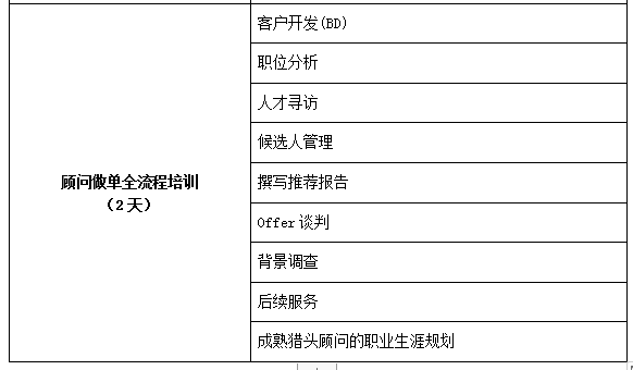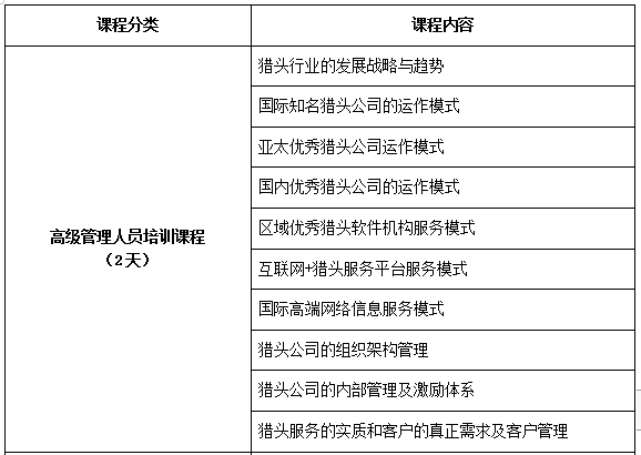 通过本次课程,可以帮助顾问及猎头公司高管开阔思路,更快的适应国际化人才服务的模式,更好的学到国际知名猎头公司的优良技术和管理模式,融入行业的国际商圈。同时对于行业的发展趋势、最新的管理工具、业内精英的成功模式进行全方位掌握,提高学员的专业素养。