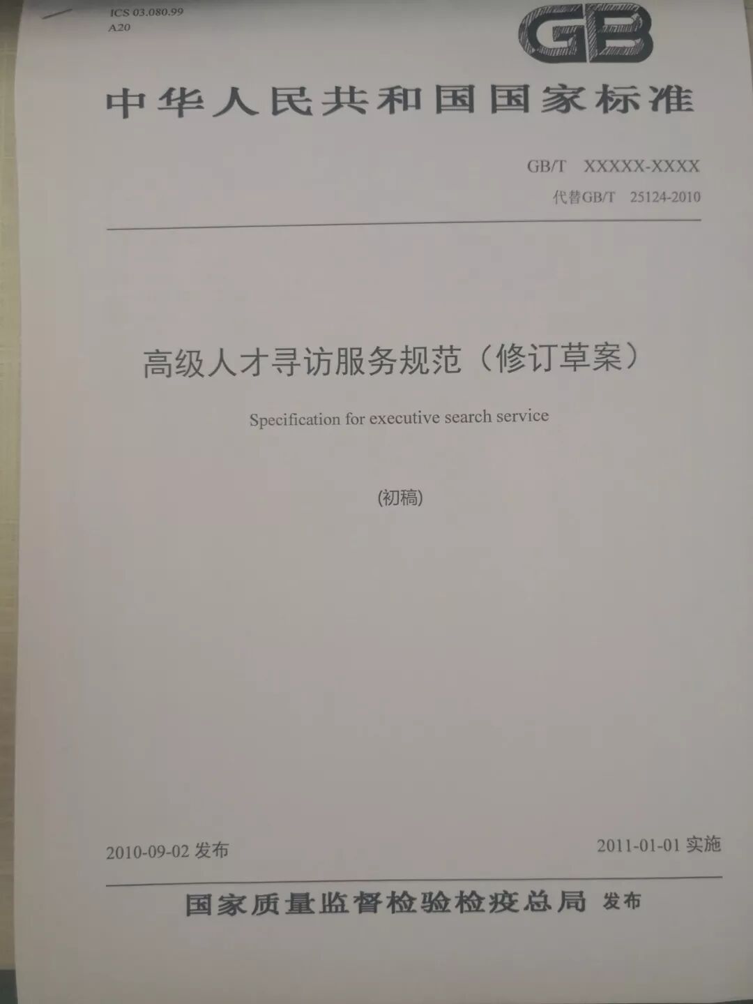 1、国家《高级人才寻访服务规范》修订意见征集;